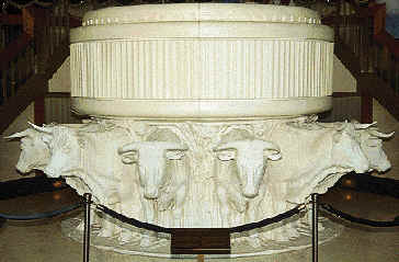 performed by any temple worthy member. Dressed in white clothes, the person enters the oxen baptismal font and stands