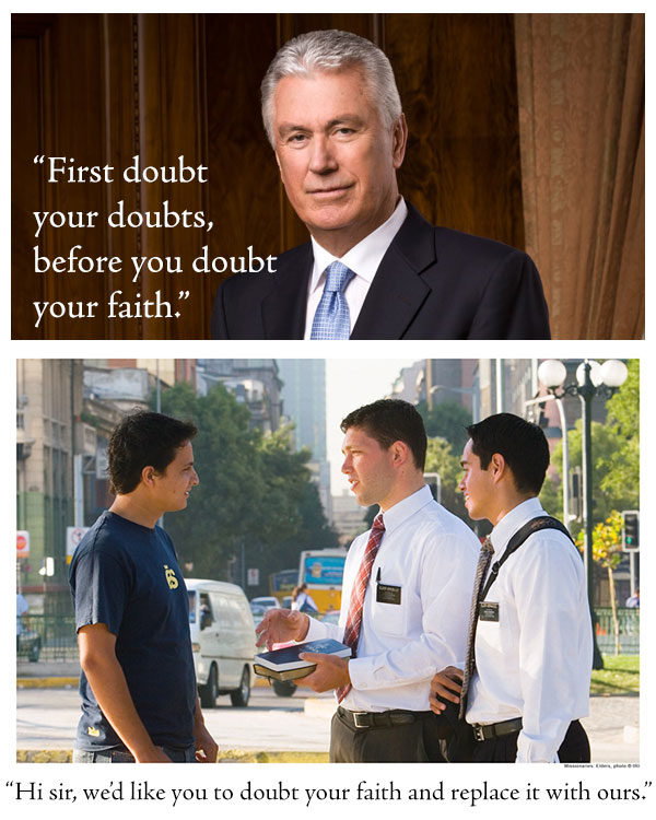 So now we have two apostles, Brown and Uchtdorf (both in the First Presidency), who advocate two opposing points of view on DOUBT. Yet they speak for God.
