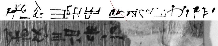 Chris Smith said: The images below show sequential characters from Book of Abraham Manuscript # 1 juxtaposed with sequential characters from the Hor Document of Breathing. As should be evident from these images, the characters come sequentially from the Breathing Document except where there is a lacuna. It is to fill the lacuna that Joseph draws characters from elsewhere on the fragment. This is what Gee failed to tell his audience.