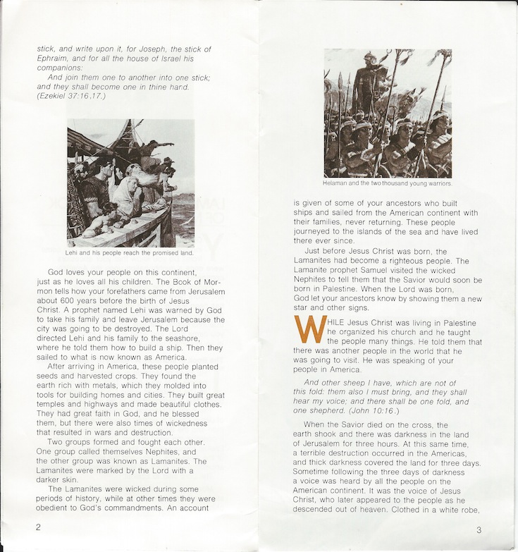 Mormonism began with the Book of Mormon. Within its pages is a fictional idea that America's indigenous people had anticipated the birth of Jesus, that he came and visited them in America, they accepted him but later rejected his teachings. This caused them to become devolved and degenerate, wicked, idle and loathsome.