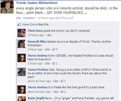 Unfortunate day for Richard James Robertson, with a major in philosophy at BYU, to be widely quoted writing this: