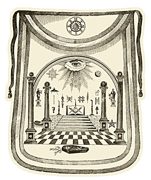 Interestingly, George Washington, a Mason, wore an identical apron to the one Satan wore in the temple. (Click the apron on the right to discover the meanings of the symbols.)